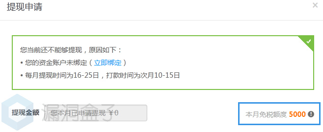 登录个人中心==》点击右侧提现按钮==》弹出框右下角可以看到每月总共免税提现额度