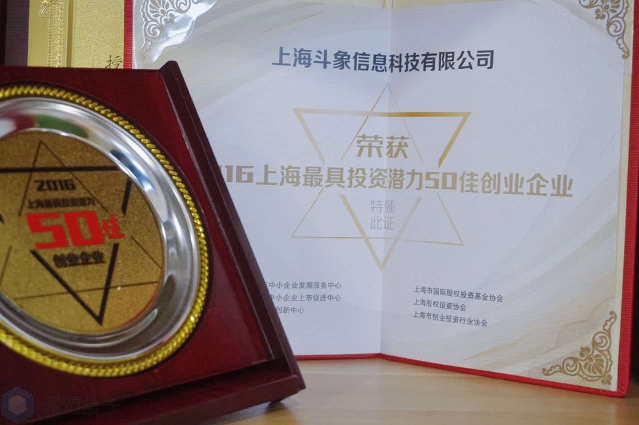 “2016上海最具投资潜力50佳创业企业”评选活动于今日向社会发布了入围的50佳企业名单,并在今天举办的“2016外滩金融·上海国际股权投资论坛 ”上为上榜的50家企业进行颁奖。上海斗象信息科技有限公司凭借一直以来的优异表现荣获“2016上海最具投资潜力50佳创业企业”,此次评选是针对2013年1月1日后在上海注册的创业企业,聚焦新技术、新产品、新模式、新业态,历时三个多月激烈角逐,由全市三家股权投资行业协会与阿里巴巴创新中心方面几十位资深投资人、行业专家、学者等经过审慎讨论,从企业、产品、团队、市场等多方面进行综合评审和打分最终得出50佳企业榜单。