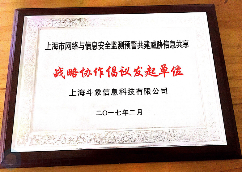 由上海市政府牵头,国家计算机网络应急技术处理协调中心为指导单位的网络与信息安全监测预警共建与信息共享战略协作计划提上日程,本计划首次从全国转向区域进行落实,第一站选择落地上海,上海斗象信息科技有限公司成为首批上海市网络与信息安全监测预警共建与信息共享战略协作倡议发起单位。